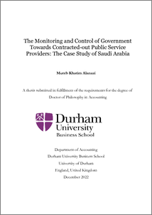 ALANAZI, MUTEB,KHATIM (2022) The Monitoring and Control of Government Towards Contracted-out Public Service Providers: The Case Study of Saudi Arabia. Doctoral thesis, Durham University.