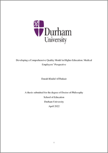 ALTHUKAIR, DANAH,KHALID,M (2022) Developing a Comprehensive Quality Model in Higher Education: Medical Employers’ Perspective. Doctoral thesis, Durham University.