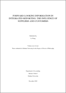 WANG, LE (2023) Forward-looking information in Integrated Reporting: The influence of suppliers and customers. Doctoral thesis, Durham University.