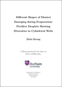 HUANG, ZHIDA (2023) Different Shapes of Menisci Emerging during Evaporation: Picolitre Droplets Showing Diversities in Cylindrical Wells. Doctoral thesis, Durham University.