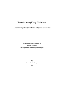 BORGES, JASON,GERALD (2023) Travel Among Early Christians: A Socio-Theological Analysis of Pauline and Ignatian Communities. Doctoral thesis, Durham University.
