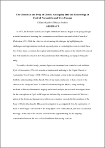 | Keywords: | Church, Body of Christ, Cyril of Alexandria, Yves Congar |