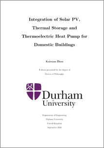 ZHOU, KAIXUAN (2024) Integration of Solar PV, Thermal Storage and Thermoelectric Heat Pump for Domestic Buildings. Doctoral thesis, Durham University.
