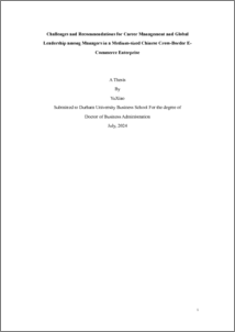 Xiao, Yu (2024) Challenges and Recommendations for Career Management and Global Leadership among Managers in a Medium-sized Chinese Cross-Border E-Commerce Enterprise. Doctoral thesis, Durham University.