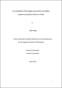 PANG, HAO (2024) An evaluation of the large-scale senior secondary science curriculum reform in China. Doctoral thesis, Durham University.
