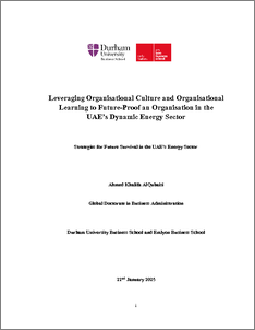 ALQUBAISI, AHMED,KHALIFA,SAIF,KHALIFA (2025) Leveraging Organisational Culture and Organisational Learning to Future-Proof an Organisation in the UAE’s Dynamic Energy Sector