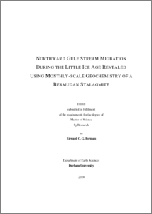 FORMAN, EDWARD,CHRISTOPHER,GRANT (2025) Northward Gulf Stream Migration During the Little Ice Age Revealed Using Monthly-Scale Geochemistry of a Bermudan Stalagmite. Masters thesis, Durham University.