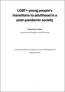 DAW, STEPHANIE,LOUISE (2024) LGBT+ young people’s transitions to adulthood in a post-pandemic society. Doctoral thesis, Durham University.