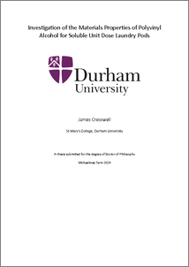 CRESSWELL, JAMES,DANIEL (2024) Investigation of the Materials Properties of Polyvinyl Alcohol for Soluble Unit Dose Laundry Pods. Doctoral thesis, Durham University.
