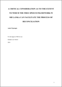 WIJESINGHE, AMILA (2025) A CRITICAL CONSIDERATION AS TO THE EXTENT TO WHICH THE FREE SPEECH FRAMEWORK IN SRI LANKA CAN FACILITATE THE PROCESS OF RECONCILIATION. Doctoral thesis, Durham University.