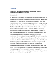 In UK Higher Education (HE) around a quarter of undergraduate students are considered ‘commuters’ yet little is still known about this group, largely due to the absence of a sector-agreed definition and accompanying sector-wide data. This thesis seeks to address this gap in the literature through exploring the lived experiences of commuter students in HE at three universities in the North of England. Through an innovative combination of methods I deepen known understanding of what being a commuter student is like through exploring not just how commuter students experience their commute, but their interaction with the places and spaces that collectively influence their wider university experience. Using actor-network theory (ANT) in combination with the multi-sited ethnography (MSE) this thesis employs also enables identification of the networks of people and things that commuter students are situated in that affect their commuting practices. The findings of this thesis highlight how the deficit narrative previously purveyed around commuter students’ experiences do not reflect the complexity and heterogeneity that permeates across their lived experiences of travel, their arrival on campus, experiences of their academic studies and interaction with wider university life. Further research is necessary across different institutions and regions to continue building a richer understanding of what it is like to be a commuter student in the UK.
