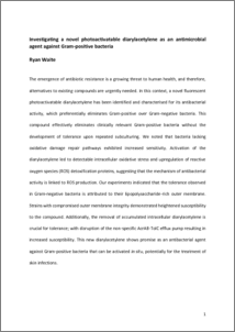 WAITE, RYAN (2025) Investigating a novel photoactivatable diarylacetylene as an antimicrobial agent against Gram-positive bacteria. Doctoral thesis, Durham University.