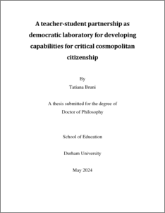 BRUNI, TATIANA (2025) A teacher-student partnership as democratic laboratory for developing capabilities for critical cosmopolitan citizenship. Doctoral thesis, Durham University.