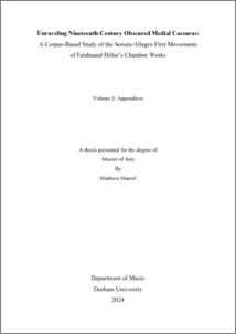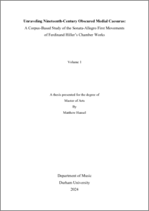HANSEL, MATTHEW (2024) Unraveling Nineteenth-Century Medial Caesuras: A Corpus-Based Study of the Sonata-Allegro First Movements of Ferdinand Hiller's Chamber Works. Masters thesis, Durham University.