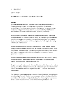 GRAYSTONE, ANDREW (2025) Losing Touch? Reaching for a Theology of Touch for a Digital Age. Doctoral thesis, Durham University.