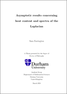FARRINGTON, SAM (2025) Asymptotic results concerning heat content and spectra of the Laplacian. Doctoral thesis, Durham University.