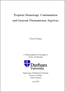 DAISEY, OLIVER,JAMES (2025) Tropical Homotopy Continuation and Laurent Phenomenon Algebras. Doctoral thesis, Durham University.