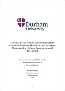 NAGA, LUCY,VICTORIA (2025) Morality, Social Identity and Environmentally Conscious Economic Behaviour: Advancing our Understanding of Green Consumption and Investment. Doctoral thesis, Durham University.
