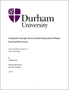 ZHANG, YINGFENG (2025) Sustainable Strategies for the Scalable Production of Widely Used Small Precursors. Doctoral thesis, Durham University.