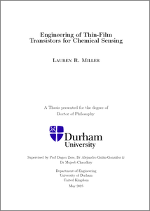 MILLER, LAUREN,REBECCA (2025) Engineering of Thin-Film Transistors for Chemical Sensing. Doctoral thesis, Durham University.