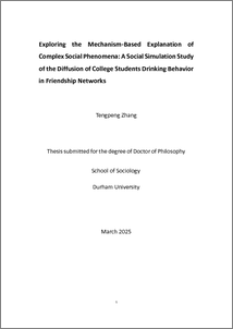 ZHANG, TENGPENG (2025) Exploring the mechanism-based explanation of complex social phenomena: A social simulation study of the diffusion of college students drinking behavior in friendship networks. Doctoral thesis, Durham University.