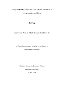 FENG, JIE (2025) Essays on Bidder Anchoring and Cultural Narratives in Mergers and Acquisitions. Masters thesis, Durham University.