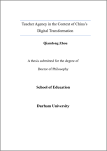 ZHOU, QIANDONG (2025) Teacher Agency in the Context of China’s Digital Transformation. Doctoral thesis, Durham University.