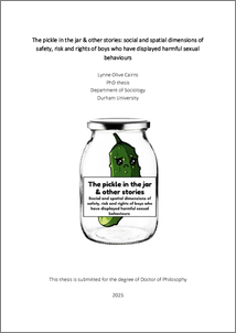 CAIRNS, LYNNE,OLIVE (2025) The pickle in the jar & other stories: social and spatial dimensions of safety, risk and rights of boys who have displayed harmful sexual behaviours. Doctoral thesis, Durham University.