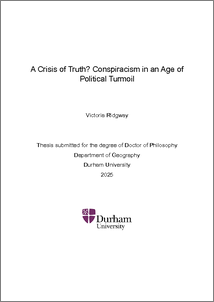 RIDGWAY, VICTORIA (2025) A Crisis of Truth? Conspiracism in an Age of Political Turmoil. Doctoral thesis, Durham University.