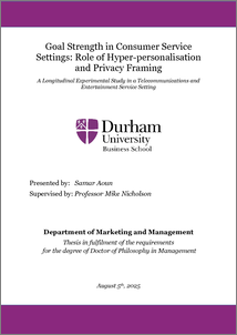 AOUN, SAMAR,HICHAM (2025) Goal Strength in Consumer Service Settings: Role of Hyper-personalisation and Privacy Framing. Doctoral thesis, Durham University.