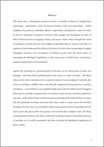 | Keywords: | Music, Music-making, Worship, New Musicology, Theology and Qualitative Research |